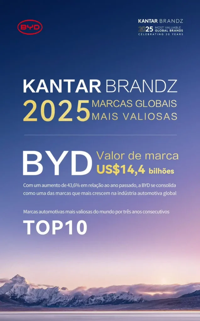 BYD está entre as 10 marcas automotivas mais valiosas do mundoda Kantar BrandZ 2025