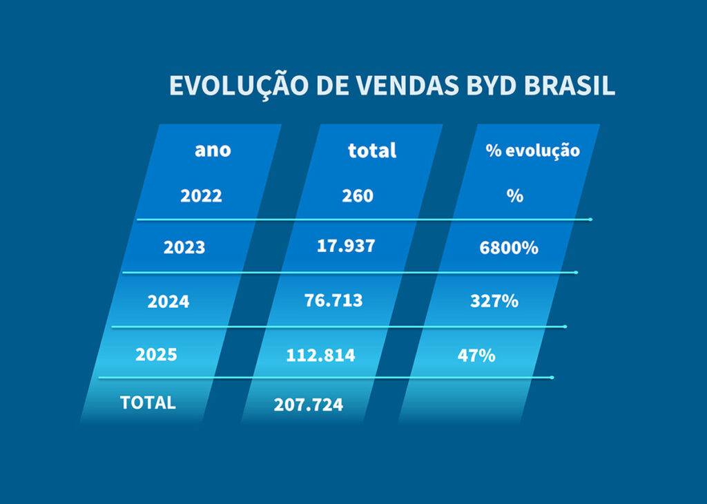 BYD já ultrapassa os 200 mil veículos eletrificados emplacados no Brasil em 2025