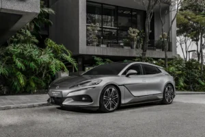O cupê esportivo 100% elétrico mescla o sofisticado design europeu do alemão Wolfgang Egger e sua equipe, com altíssimo desempenho e tecnologia de primeira linha, trazendo ao Brasil a plataforma e³, que tem funções como a assistência de autoparking para espaços apertados.